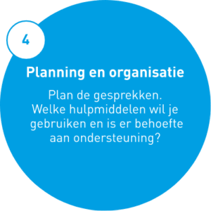 Wie is wanneer waarbij betrokken? En wie regelt dit? Ook is het belangrijk om vervolg te geven aan de opbrengsten van de gesprekken. Hoe kom je op grond daarvan tot een beoordeling van taakbeleid?